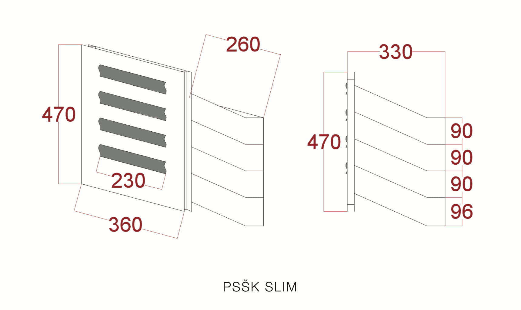 Vhod z exteriéru, výber z interiéru. Tento model vyrábame vo veľkosti SLIM. Povrchová úprava pomocou práškových farieb RAL v štandardných odtieňoch. Tento model vyrábame aj v nerezovom prevedení (INOX).